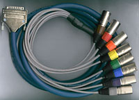 colour-coded male XLR connectors on the other end (DB25 to XLRF looms are available