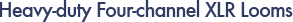These heavy-duty four-channel XLR looms are suitable for touring use. They are made from very tough Canford FSJ multicore.