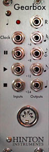 GearboxA compact module that converts and locks analogue, MIDI and DINSync timing clocks together. Any one source may be master and the other two follow in synchronisation. Available in two versions: a basic 8HP module with a single 5-pin DIN socket that may be used as one input or output or a full version with manual transport control switches and a separate 6HP panel containing four DIN I/O connectors. Any analogue signals may be used as inputs enabling slow rising waveforms to be used as jitter free controls. MIDI and DINSync sequencers and drum machines and DAWs may be controlled by analogue signals and vice versa. Analogue sequencers may be driven by MIDI or DINSync clocks and commands. Because all timing is divided down rather than multiplied up there is no sloppy timing with tempo changes. This module was developed in response to a request on the Muffwiggler forum. The full thread discussion may be read here