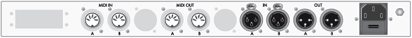 In A, Out A, In B, Out B (paralleled with rear panel)